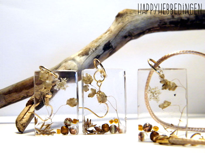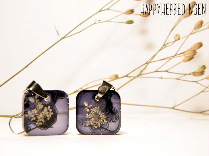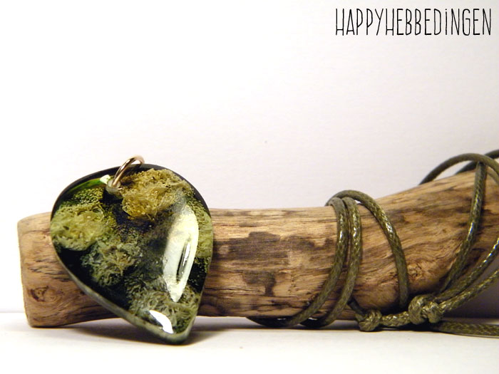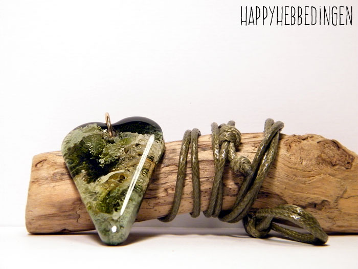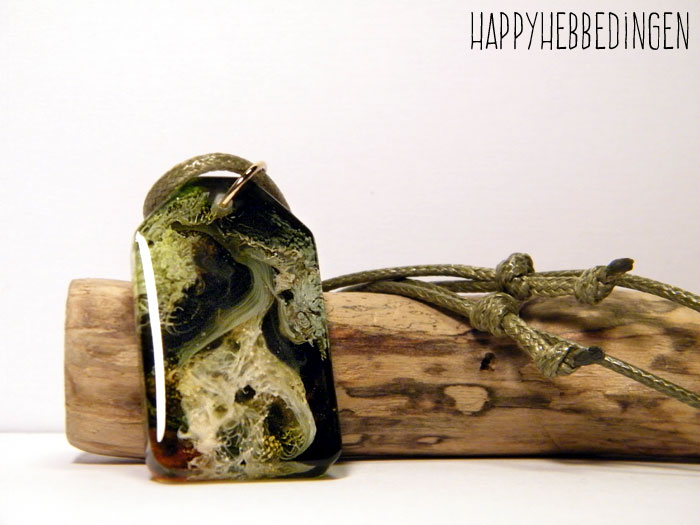 Wij maken sieraden van resin, gevuld met allerlei natuurlijke materialen, zoals bloemen, hout en mos.